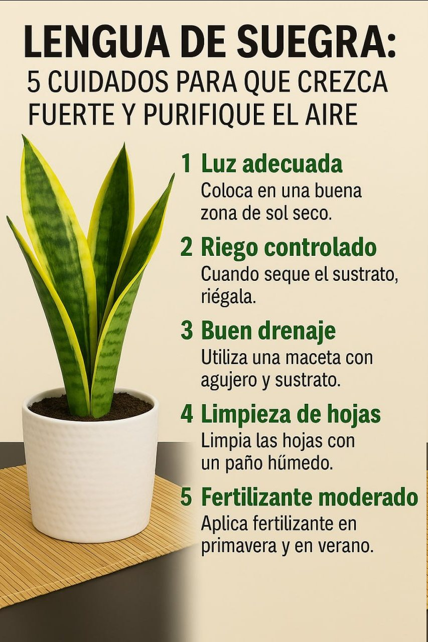 La lengua de suegra, también conocida como sansevieria o espada de San Jorge, es una de las plantas más resistentes y purificadoras que podés tener en casa.