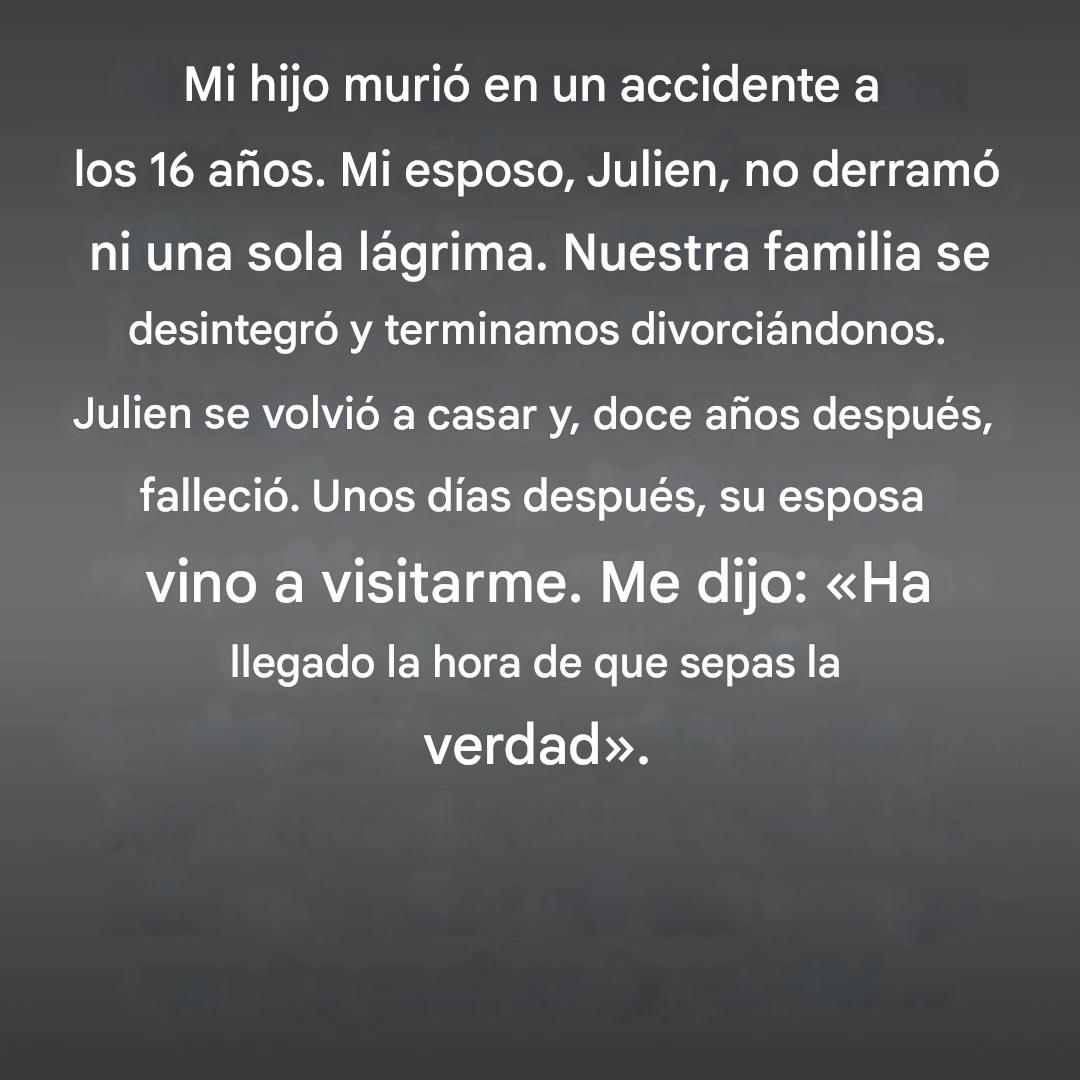 Un dolor que nunca había visto antes. La noche en que nuestro hijo nos dejó, Julien fue allí solo. Llevó flores. Se sentó junto al agua y habló durante horas, como si aún estuvieran juntos. Me explicó que, esa noche, bajó la guardia. Lloró largo y tendido, pero lejos de mí.