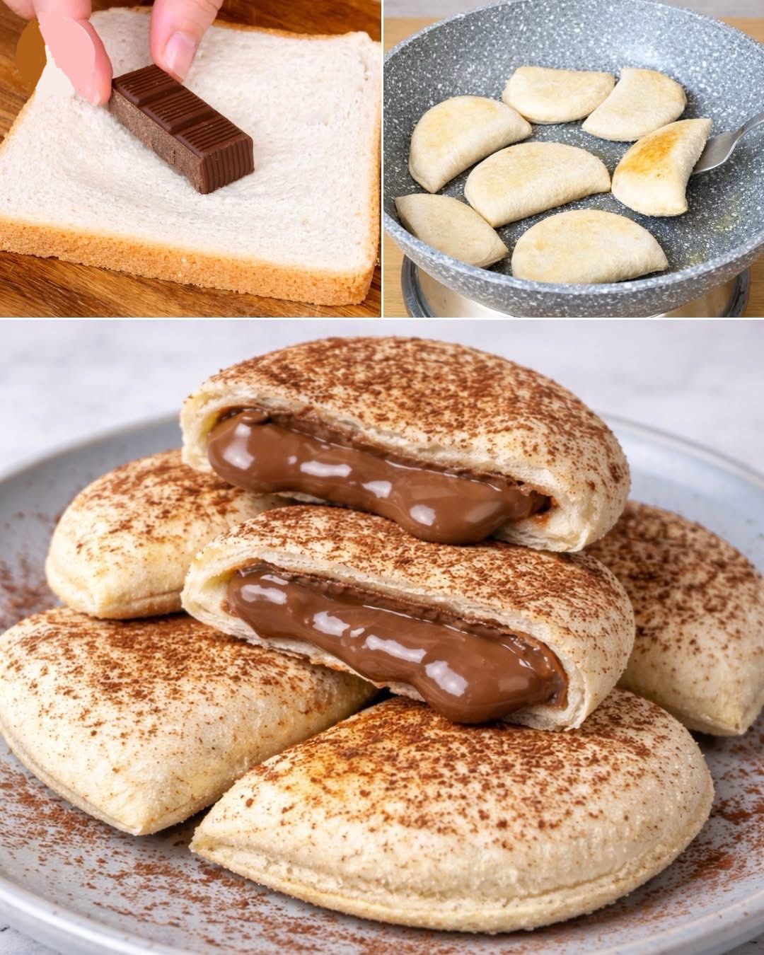 ¿Se te antoja un postre rápido y fácil, divertido e impresionante? ¡No busques más! Descubre esta sorprendente versión de un clásico: ¡Raviolis de chocolate con 2 ingredientes! Estos no son los tÃpicos raviolis. OlvÃdate de la masa delicada y los rellenos elaborados. Esta receta transforma pan rebanado común en deliciosos raviolis rellenos de exquisito chocolate. Solo necesitas dos ingredientes: pan rebanado y chocolate, y no se requieren utensilios ni técnicas especiales. Simplemente usa un rodillo para aplanar el pan y un cortador de galletas o un vaso para darles forma. Una rápida fritura en sartén garantiza una corteza perfectamente crujiente y un centro de chocolate tibio y cremoso. Esta receta es perfecta para cualquier ocasión. Prepárala como postre de última hora después de la cena, crea una actividad divertida para los niños en la cocina o sorprende a tus invitados con un dulce inesperado.