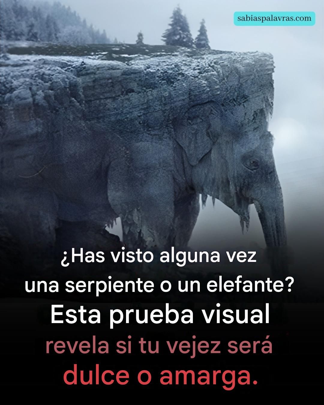 Según la descripción de la imagen, el 97% de las personas ve una serpiente antes de notar el elefante. Esto puede tener implicaciones interesantes para tu visión del mundo e incluso predecir si tu vejez será dulce o amarga.